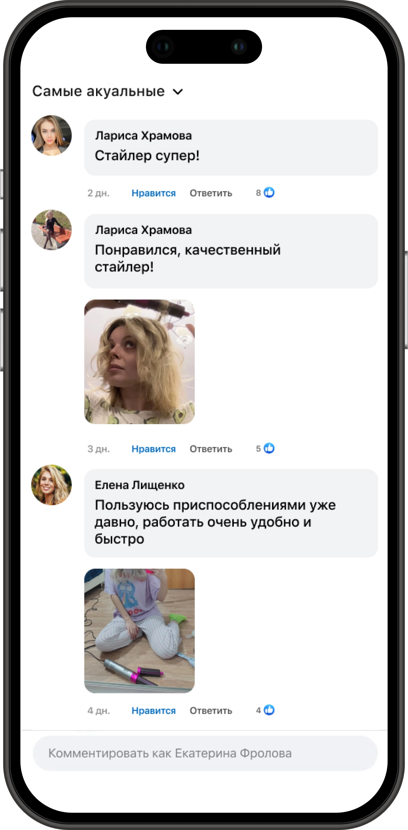 Стайлер підходить для всіх типів волосся, укладання проводиться за допомогою тільки повітря